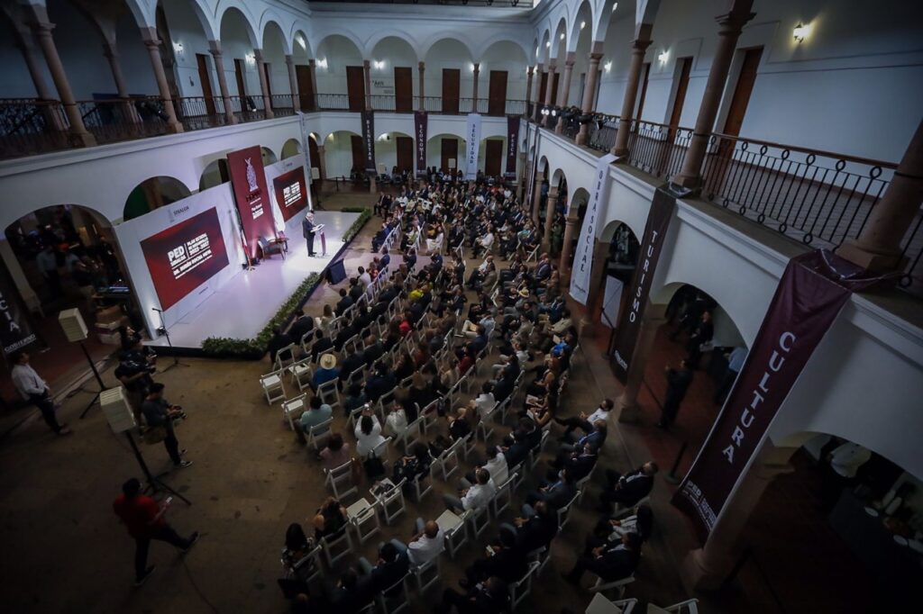 El Museo de Arte de Sinaloa fue el escenario donde el gobernador Rocha presentó su plan rector para los siguientes seis años, y lo hizo en cumplimiento a la Ley de Planeación del Estado de Sinaloa, que establece que en los siguientes seis meses después de la toma de posesión, el titular del Ejecutivo estatal deberá presentar su Plan Estatal de Desarrollo.