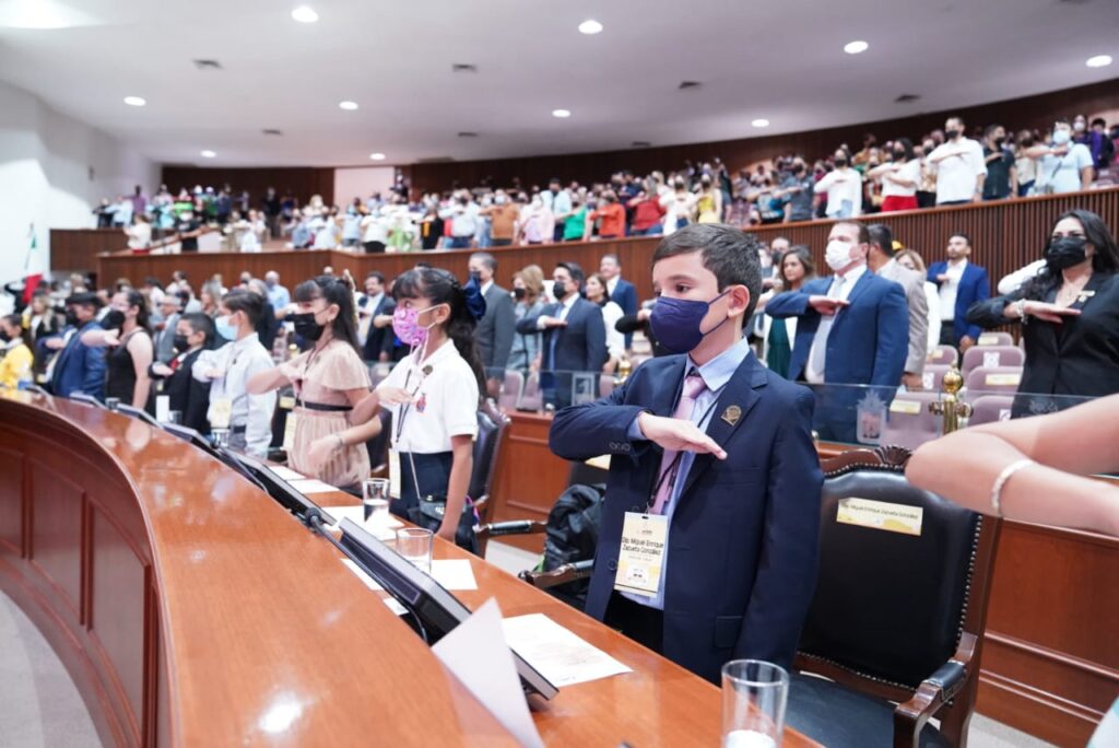 Este jueves el presidente de la Mesa Directiva del Congreso del Estado de Sinaloa, Gene René Bojórquez Ruiz, les tomó la protesta, en Sesión Solemne, a las 27 niñas diputadas y 13 niños diputados como integrantes del Parlamento Infantil 2022.