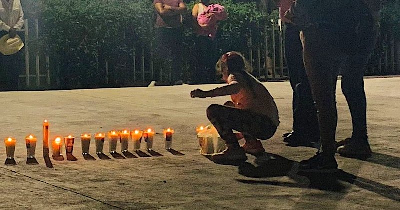 Vecinos del centro de Fresnillo acudieron al Santuario de la Virgen de Guadalupe para colocar en la entrada una cruz de veladoras y pedir por el descanso eterno del niño.