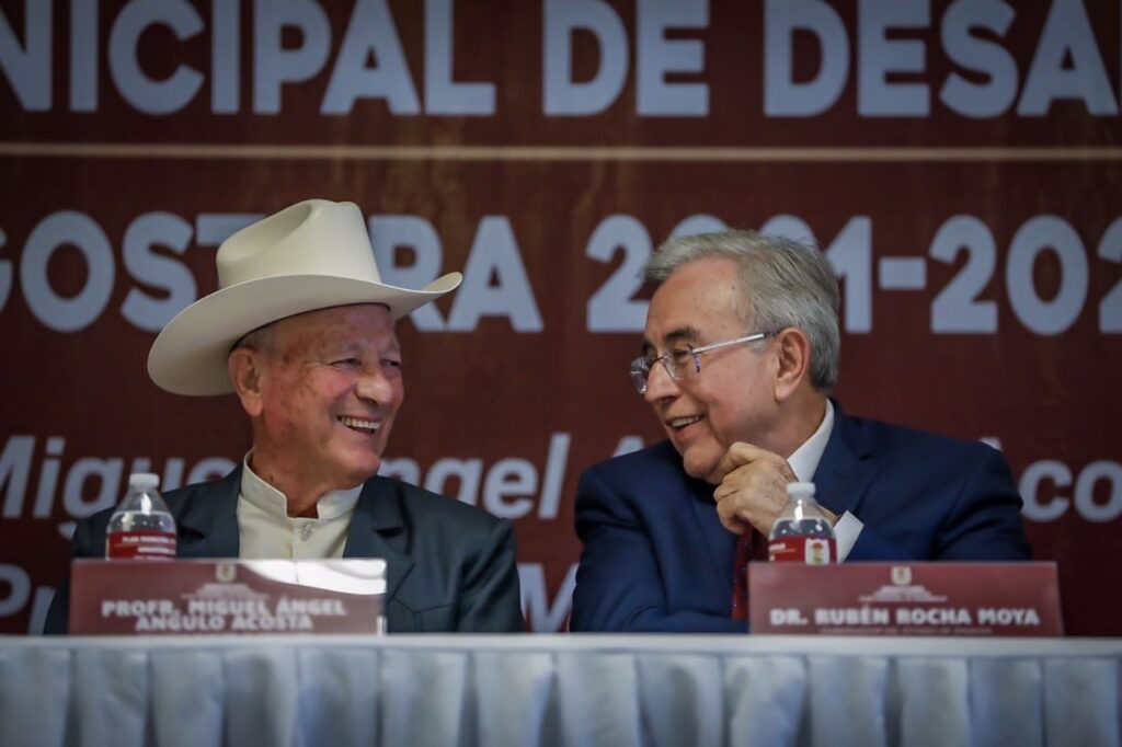 Angostura, Sinaloa, 10 de agosto de 2022.- Al acompañar al presidente municipal de Angostura, Miguel Ángel Angulo Acosta a la presentación de su Plan Municipal de Desarrollo 2022-2024, el gobernador Rubén Rocha Moya reiteró que continuará con el respaldo de su gobierno para este pujante municipio, donde ya se inició su transformación, como en su principal destino turístico que es el campo pesquero de La Reforma.