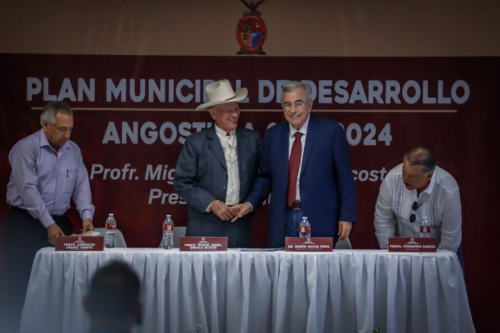 El mandatario estatal asistió al Auditorio del Ayuntamiento de Angostura para la presentación de este documento rector, cuyo ejemplar le fue entregado por el alcalde Angulo Acosta, lo mismo que al representante del Congreso del Estado, diputado local Ambrosio Chávez, así como al legislador federal Fernando García Hernández, en su calidad de invitado especial.