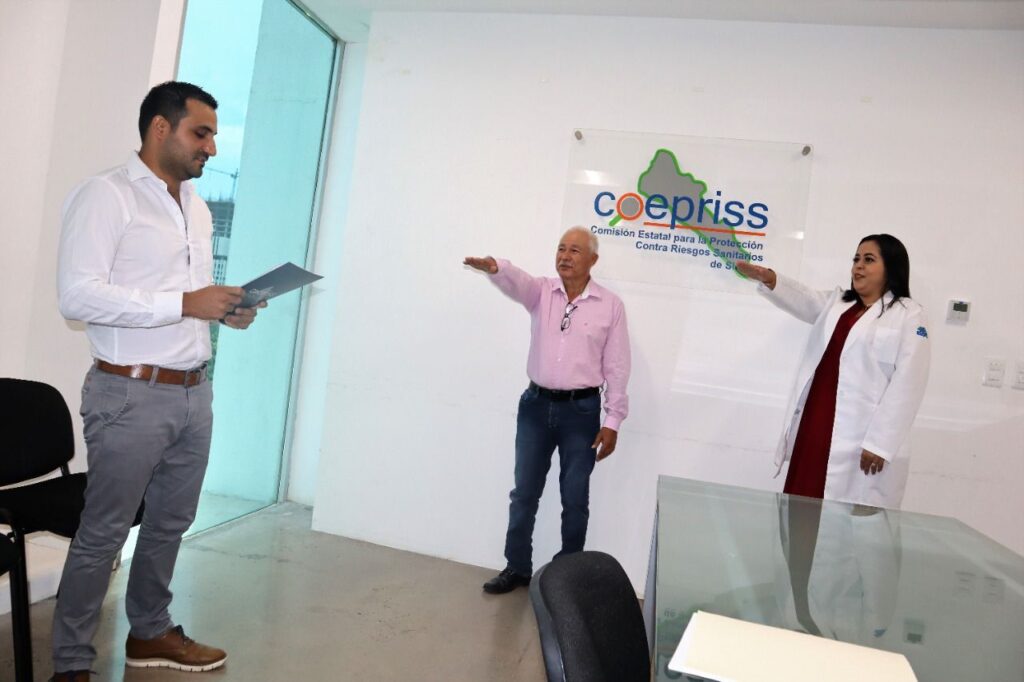 Culiacán, Sinaloa a 10 de agosto de 2022-. El titular de la Comisión Estatal para la Protección contra Riesgos Sanitarios de Sinaloa Coepriss), Ing Randy G. Ross Álvarez, tomó la protesta de ley a dos nuevos funcionarios de este organismo de la Secretaría de Salud.