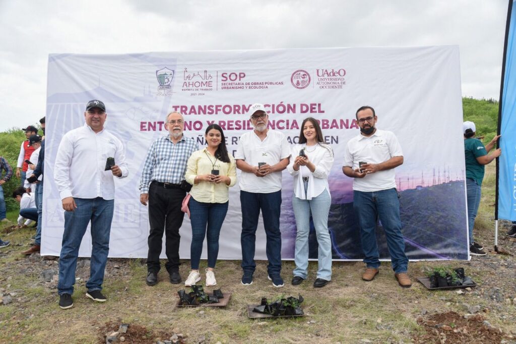 Los trabajos iniciaron por la ladera norte, aledaña a la colonia Las Malvinas, donde algunos vecinos, funcionarios municipales, estudiantes y profesores de la UADEO, e integrantes del organismo Accionarse Sinaloa, plantaron y adoptaron los arbolitos.