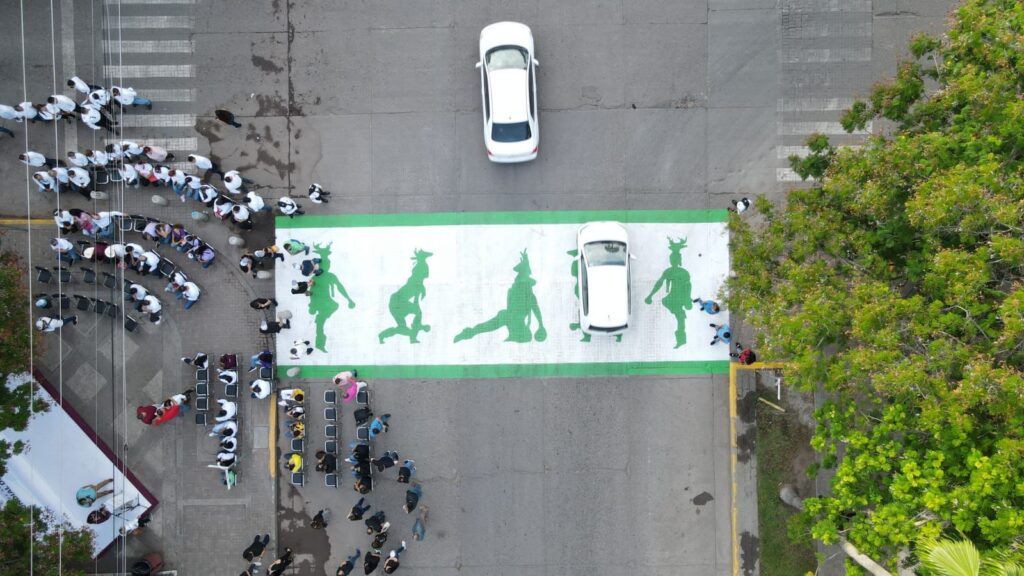 “Y aquí estamos conmemorando con el pintado de estos cruces peatonales con motivos de identidad regional, como el danzante de venado reconocido en todo el mundo, en los principales cruceros de la ciudad como es la Plazuela 27 de Septiembre hacia el corredor de la Casa del Centenario, que nos apoyó la Secretaría de Obras Públicas y el Instituto Municipal de Planeación, y vamos a hacer una caminata por estos cruces peatonales”.