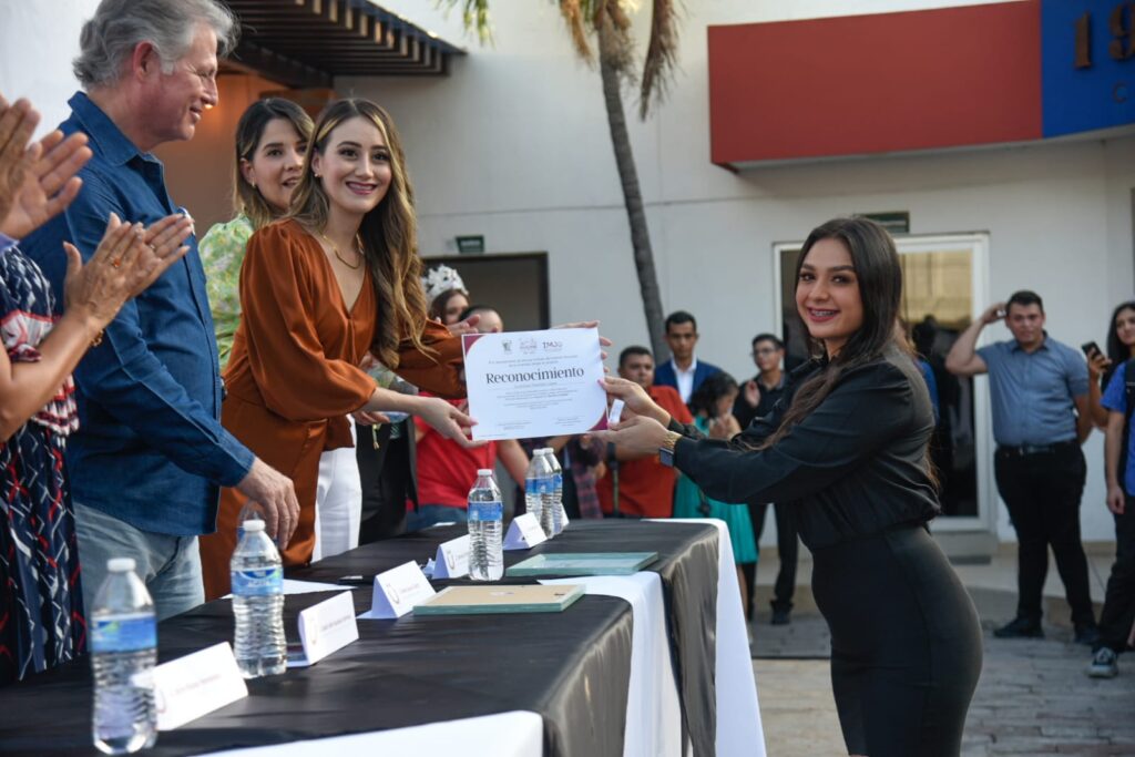 En representación del Alcalde Gerardo Vargas Landeros, el Secretario del Ayuntamiento de Ahome, Genaro García, en calidad de Presidente por Ministerio de Ley, entregó los galardones a los jóvenes distinguidos por su buen desempeño