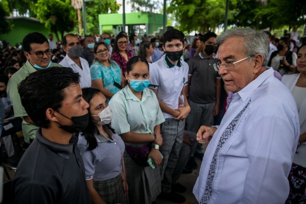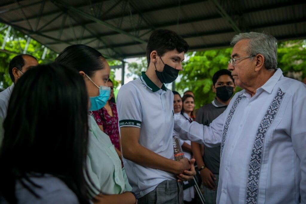 “Yo quiero llamarlos a los estudiantes y a los maestros, a la comunidad cobaense, para que se esfuercen por ser mejores, hay que superar lo que hemos hecho antes, y nosotros vamos a contribuir para que el Cobaes cada día sea mejor, desde su infraestructura, sus laboratorios, sus centros de cómputo, sus aulas, el debido confort que debe de tener un estudiante en clase, pues aquí en Sinaloa no es un lujo tener un aire acondicionado en el aula, es una necesidad”, precisó.