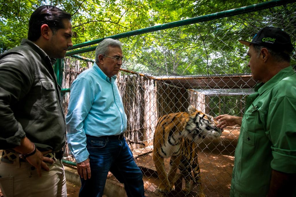 Además del elefante Big Boy y los felinos, también hay venados, simios y diversas aves, como guacamayas y queleles, y precisamente el gobernador Rocha participó en la liberación de un quelele, luego de recuperarse de algunas heridas en una de sus alas.