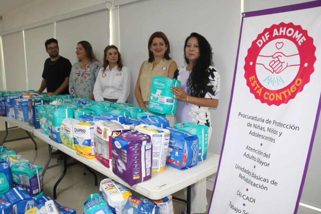 Suman 1510 piezas de pañales que DIF entregará a los adultos mayores en las jornadas de apoyo que organizan en las 7 sindicaturas como parte de los festejos del Día del Adulto Mayor, así como en asilos y centros de rehabilitación de adicciones, entre otras instituciones.