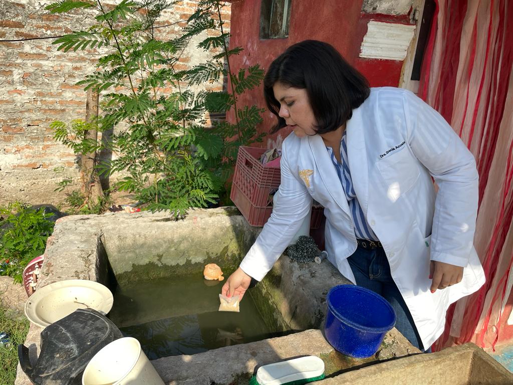 Salud Municipal, Secretaria de Salud y equipo de vectores, realizan jornada de limpieza de cacharros en las diferentes colonias de esta comunidad.