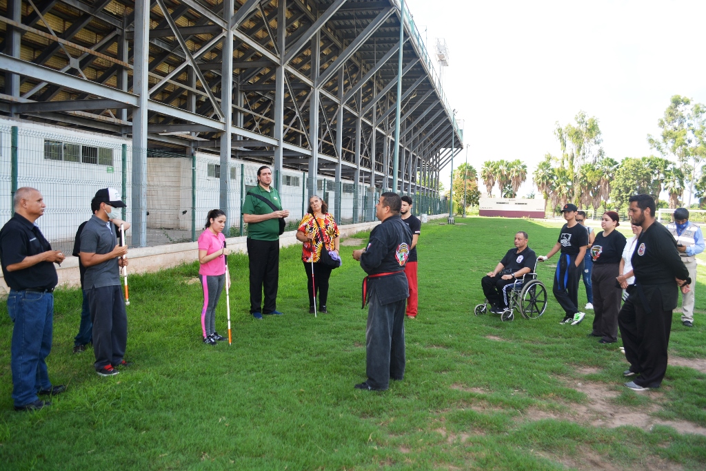 Los Mochis, Ahome, Sinaloa, México. A 26 de agosto de 2022. Este día se puso en marcha el Taller de Defensa Personal Inclusión de Personas con Discapacidad Visual y Motora, que organiza el departamento de Programas Preventivos de la SSYPC de Ahome, en la Ciudad Deportiva Centenario.