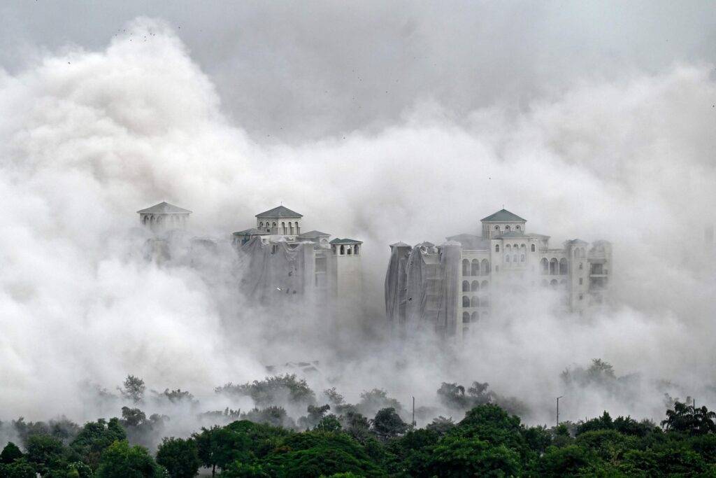 Dos torres de apartamentos de gran altura en India fueron demolidas el domingo después de que el tribunal superior las declaró ilegales por violar las normas de construcción, dijeron las autoridades. Son las estructuras más altas de la India en ser demolidas.