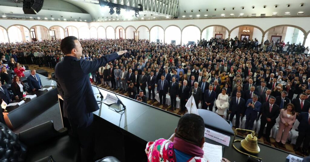 Durango, Durango, a 15 de septiembre de 2022.- El gobernador Rubén Rocha Moya asistió como invitado especial a la toma de protesta del gobernador de Durango, Esteban Alejandro Villegas Villarreal, quien a partir de ahora encabezará el Poder Ejecutivo del vecino estado.