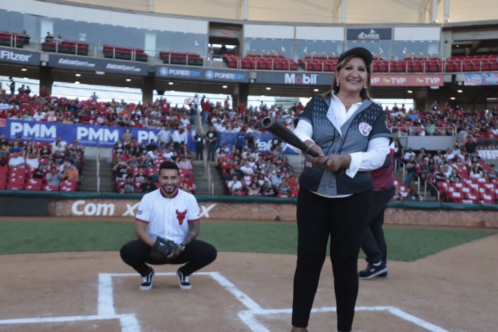 Para poner en marcha este torneo con causa en el estadio “Teodoro Mariscal”, la secretaria de las Mujeres, Tere Guerra Ochoa, quien llevó la representación del gobernador Rubén Rocha Moya, junto con el secretario del Despacho del Ejecutivo, Alejandro Higuera Osuna, bateó el primer lanzamiento, que le hizo la influencer sinaloense Stefany Loaiza, como invitada especial, mientras que en la receptoría se colocó el director del ISDE, Julio César Cascajares, para marcar de manera simbólica el inicio del juego entre los acérrimos rivales de los Tomateros de Culiacán y los Venados de Mazatlán.