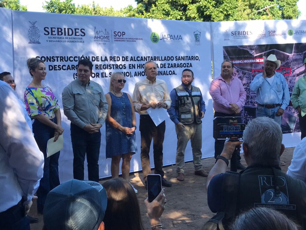 “En estos primeros 10 meses de la administración que lleva el doctor Rubén Rocha, hemos hecho unas inversiones históricas en el tema de agua, drenajes pluviales y sanitarios, en la Higuera hemos hecho diversas obras por 13 millones de pesos, se han rehabilitado un comedor comunitario, 43 cuartos dormitorios, 15 cuartos para baño, descargas domiciliarias, la pavimentación del bulevar, pisos firmes, se rehabilitó el preescolar, algunas aulas ahí, la red de alcantarillado, que es la que estamos iniciando ahorita, 17 techos firmes, es una inversión de 13 millones de pesos, así que estamos cumpliéndole a la Higuera de Zaragoza, venimos hoy a darles el drenaje que es algo necesario y sobretodo, que es un tema de salud pública, son 85 descargas domiciliarias que van a estrenar desde su casa hasta la red municipal”, dijo.