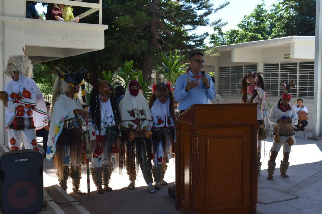 El Carrizo, Ahome, Sinaloa, 12 de Octubre del 2022.- En el plantel CONALEP El Carrizo, que alberga a 135 alumnos provenientes de comunidades indígenas, de los cuales siete de ellos hablan la lengua madre, Yoreme-Mayo, se llevó a cabo un emotivo evento conforme al Día CONALEP de los Pueblos Indígenas, ahí, el director general del colegio estatal en Sinaloa, Lic. Wilfredo Véliz Figueroa, señaló que la encomienda de nuestro gobernador del estado, Ruben Rocha Moya, rescatar y preservar las raíces culturales que nos caracterizan.