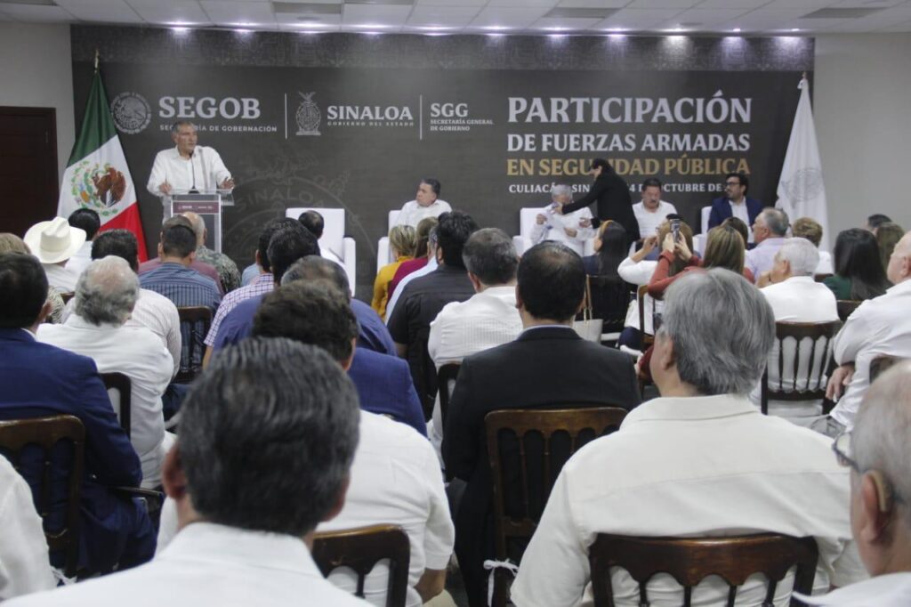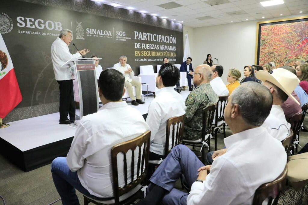 En improvisada conferencia de prensa, realizada al término del evento denominado Participación de Fuerzas Armadas en Seguridad Pública, presidido por el Secretario de Gobernación, Lic. Adán Augusto López Hernández; Diputado Federal y coordinador de la Fracción Parlamentaria de Morena en el Congreso de la Unión, Ignacio Mier Velasco y el gobernador, Dr. Rubén Rocha Moya, ahí el alcalde de Ahome aseveró que en Ahome “estamos muy contentos con las instrucciones del gobernador, Dr. Rubén Rocha Moya, por lo que nos mantenemos atentos llevando a cabo las Mesas de la Construcción de la Paz, de manera presencial, ayudando a las fuerzas federales para que hagan su trabajo, y ellos como hermanos mayores que nosotros en este tema, pues llevándonos a la tranquilidad en el municipio de Ahome”.