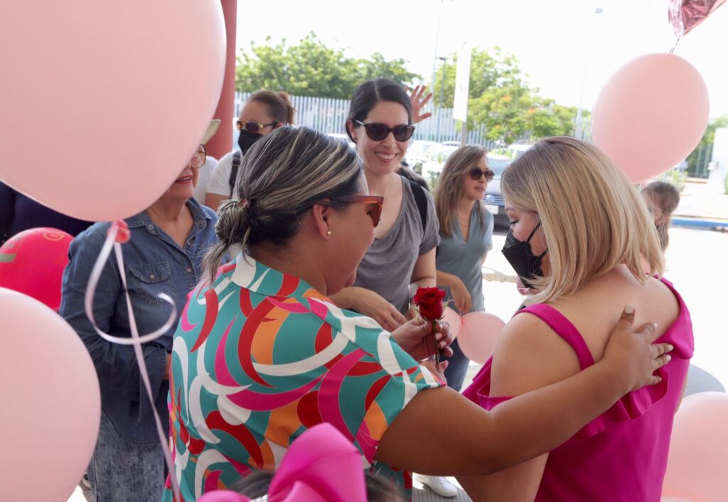 Son poco más de 30 personas quienes la reciben con porras, globos y cánticos… sus rosadas mejillas se sonrojan mientras que sus ojos claros se humedecen… otras personas se encuentran en unas bancas y también se emocionan de ver cómo Erica fue recibida al salir del Instituto Sinaloense de Cancerología luego de recibir la última quimioterapia… ella es una más de las cientos, quizá miles de mujeres sinaloenses que sostienen una lucha contra el cáncer.