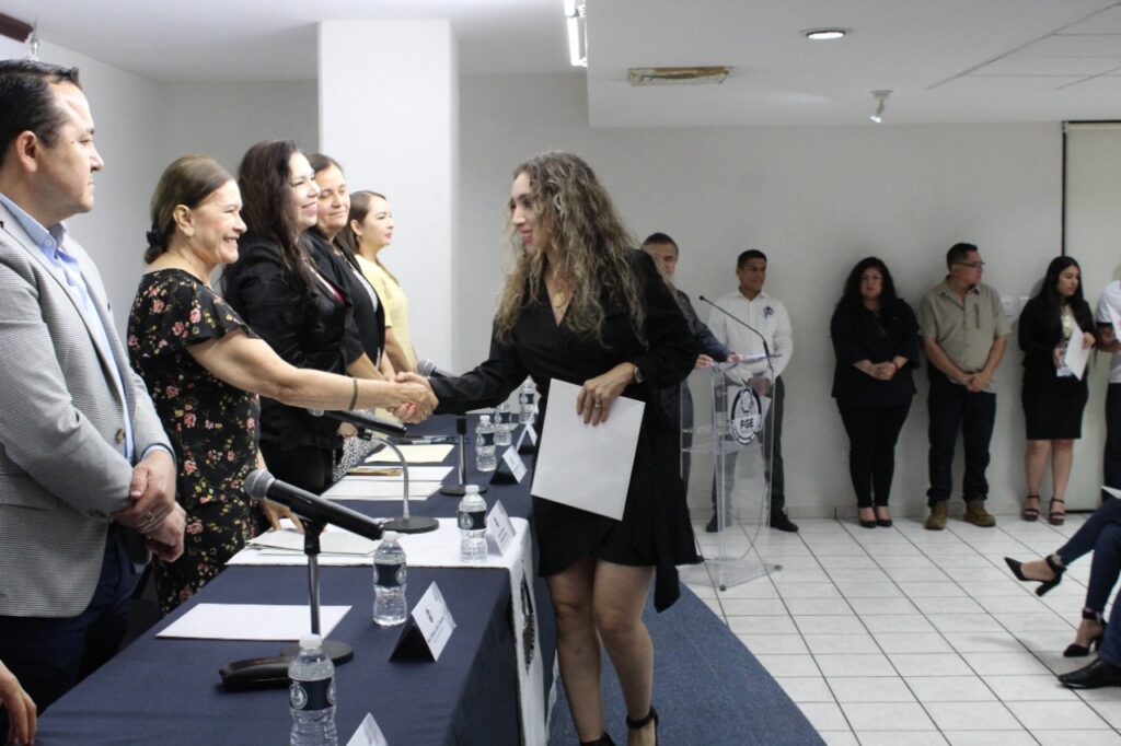 La titular de la FGE, Sara Bruna Quiñónez Estrada, destacó la lealtad, permanencia de quienes hoy, reciben este reconocimiento ya que, con su aporte contribuyen a tener una Fiscalía que dé el servicio y atención que requiere la ciudadanía.