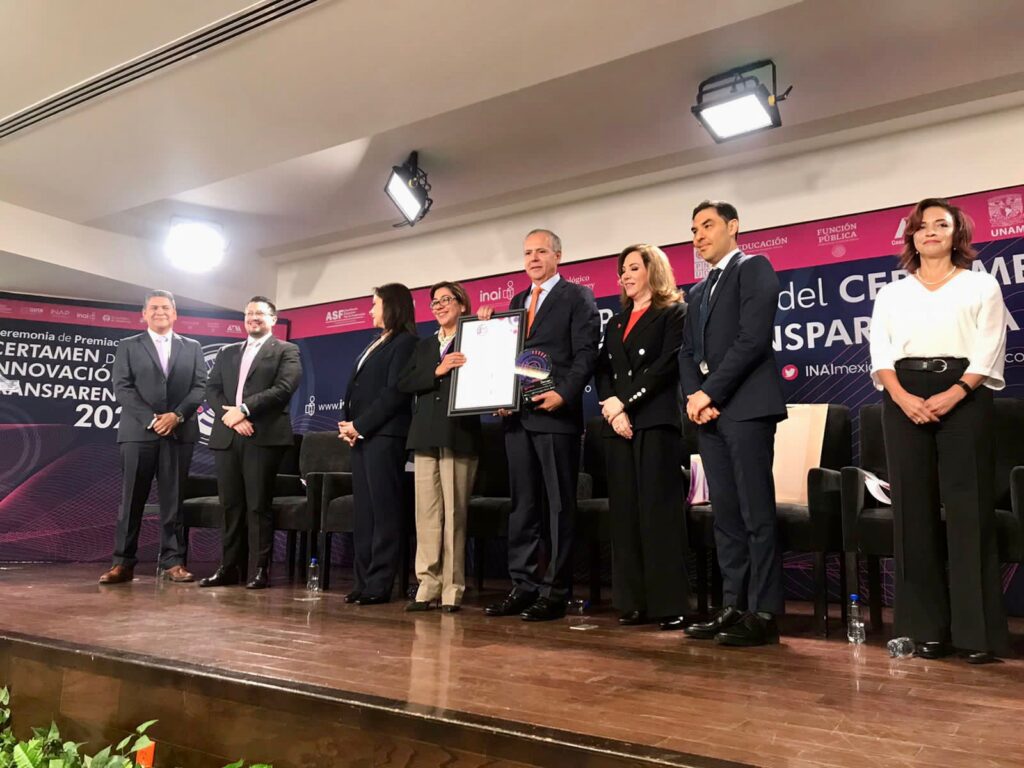 La ceremonia de premiación del certamen de Innovación en Transparencia 2022, se llevó a cabo en el auditorio Alonso Lujambio del INAI, en la CDMX, donde el Alcalde Gerardo Vargas Landeros, estuvo presente para recibir el distintivo, de manos de Josefina Román Vergara, Comisionada del Instituto Nacional de Transparencia, Acceso a la Información y Protección de Datos Personales, y, Roberto Moreno Herrera, titular de la Secretaría Ejecutiva del Sistema Nacional Anticorrupción (SESNA).
