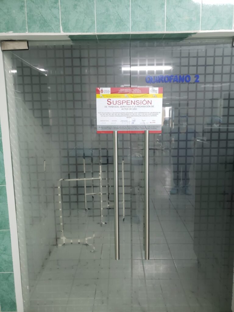 “Se han realizado once visitas de verificación sanitaria a clínicas y hospitales, implementando medidas de seguridad en nueve hospitales, que consisten en suspensiones de quirófanos, centros de Esterilización y Embalaje y en el área administrativa (…) no cuentan con la documentación legal para su operación, entre licencias sanitarias, contratos de servicios subrogados y permisos sanitarios de construcción”, expuso.