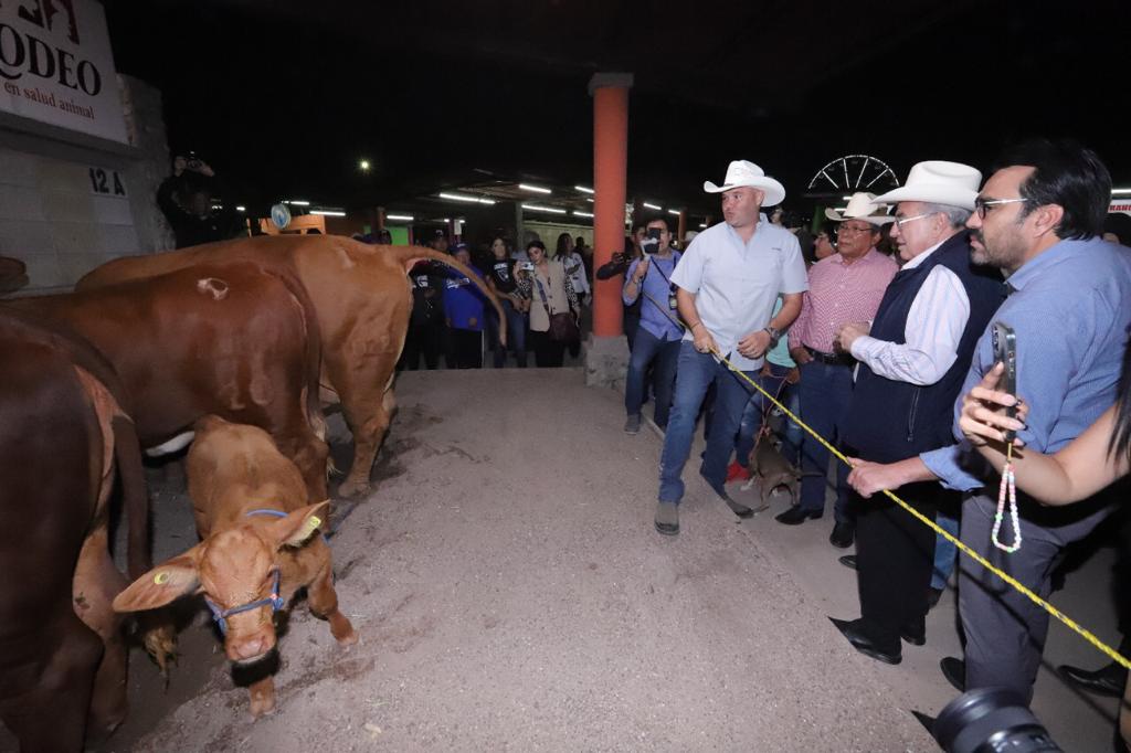 «Tenemos que, no sólo atender estos temas fitosanitarios, hay que defender la mejora genética, tenemos, estamos más o menos bien, pero debemos estar mejor. Vamos a fortalecer la siembra de pastizales, porque eso nos da garantía de que se alimenten bien las vacas, los becerros, los toros y podamos elevar su genética y su fertilidad sobre todo. He checado que no estamos muy muy bien en la fertilidad. Necesitamos hacer que el tema reproductor en el ganado aumente, para eso vamos a estar con ustedes, vamos a apoyarlos, vamos a seguir estando cerca», precisó el Gobernador.