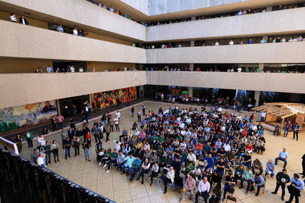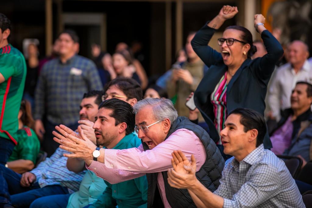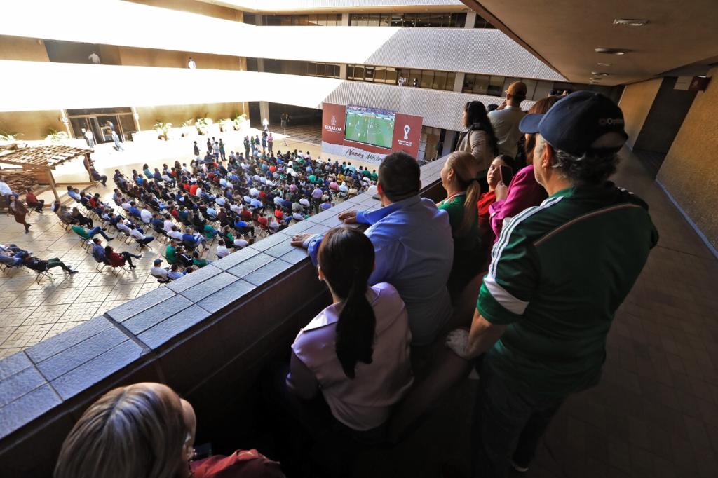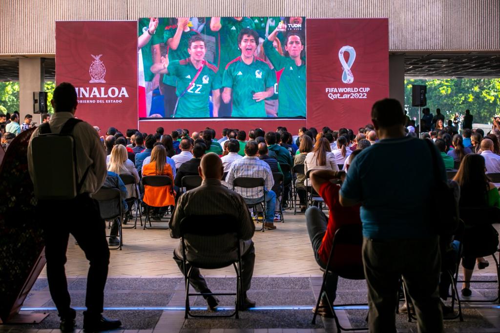 Culiacán, Sinaloa, a 22 de noviembre de 2022.- Al lado de cientos de trabajadores de Palacio de Gobierno, el gobernador Rubén Rocha Moya presenció el debut de la Selección Mexicana de Futbol en el Mundial de Qatar, en un partido que empató a cero goles con su similar de Polonia, donde la figura del juego fue el portero mexicano, Francisco Guillermo Ochoa al detener un penalti del delantero Robert Lewandowski, quien milita en el Barcelona FC.