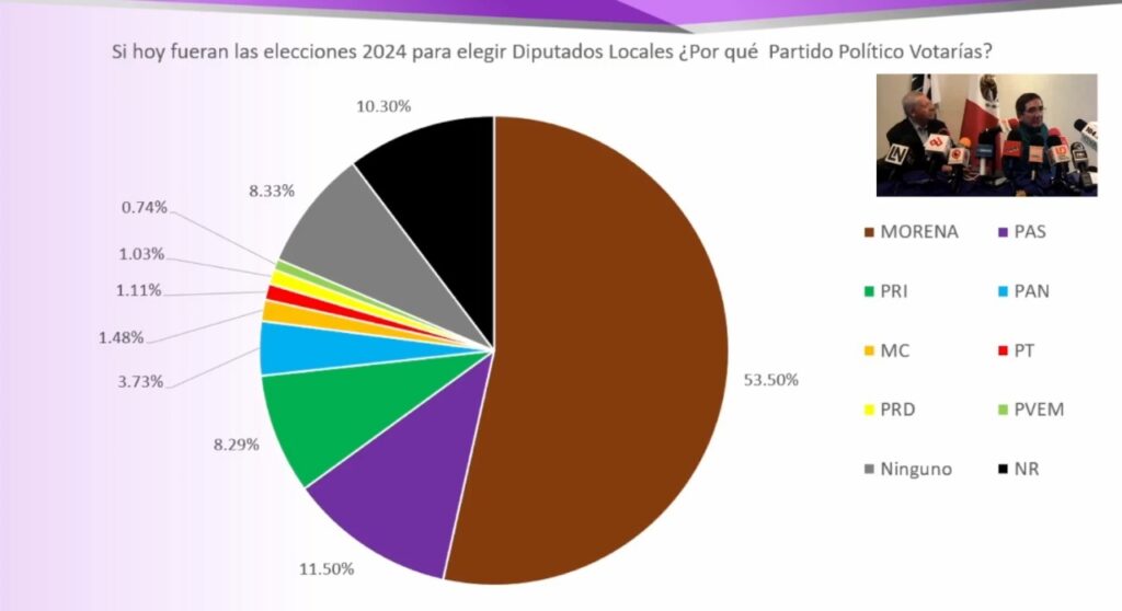 El muestreo arrojó un 11.50% a favor del PAS, detrás de MORENA y a más de 3 puntos del tercer lugar el PRI.