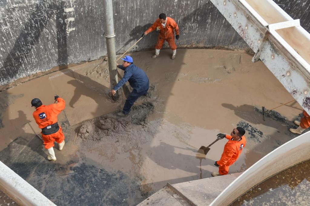 Agregó que con este mantenimiento se han sacado aproximadamente media tonelada de lodo, además de que tras culminar la limpieza se realizará un revestimiento ya que la parte impermeabilizada presenta deterioro.