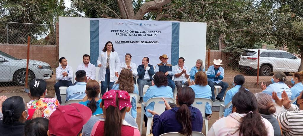 El Fuerte, Sinaloa, 06 de diciembre del 2022.- La Dirección de Salud Municipal, a cargo de la Dra. Grecia Marsella Acosta Ruiz, en compañía de Julio Augusto Mendivil, Jefe del Departamento Comunidades Saludables, hicieron entrega de la certificación que acredita a la comunidad de La Higuera de los Natoches, como una comunidad promotora de salud, un logro gracias al esfuerzo y participación de la población, en las actividades realizadas en materia de prevención y promoción.