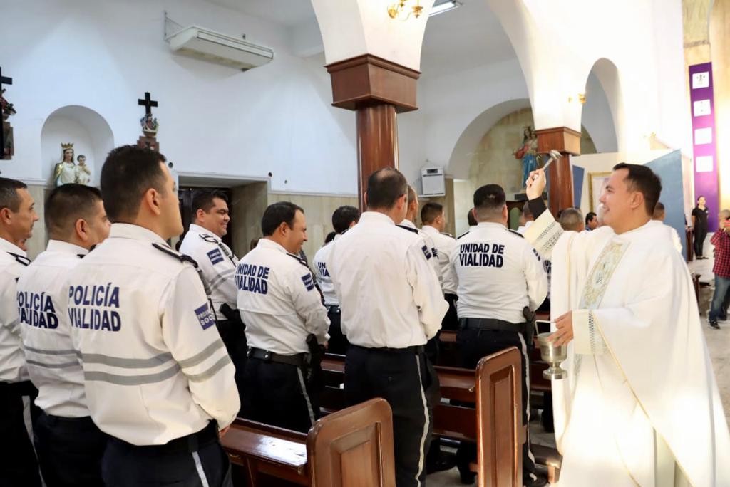 El Presidente Municipal Gerardo Octavio Vargas Landeros acompañó a los agentes en la misa con motivo de su día, donde dijo el Ayuntamiento les ha correspondido a su esfuerzo