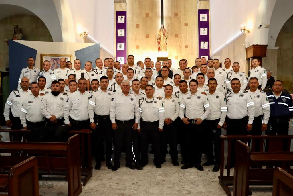 El Presidente Municipal Gerardo Octavio Vargas Landeros acompañó a los agentes en la misa con motivo de su día, donde dijo el Ayuntamiento les ha correspondido a su esfuerzo