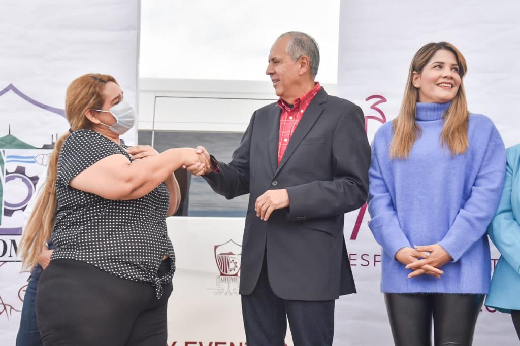 A nombre de las familias beneficiadas hizo uso de la voz la señora Guadalupe Corrales Camargo, quien en breve mensaje expresó la felicidad que siente de que por fin después de muchos años, tendrá su calle pavimentada.