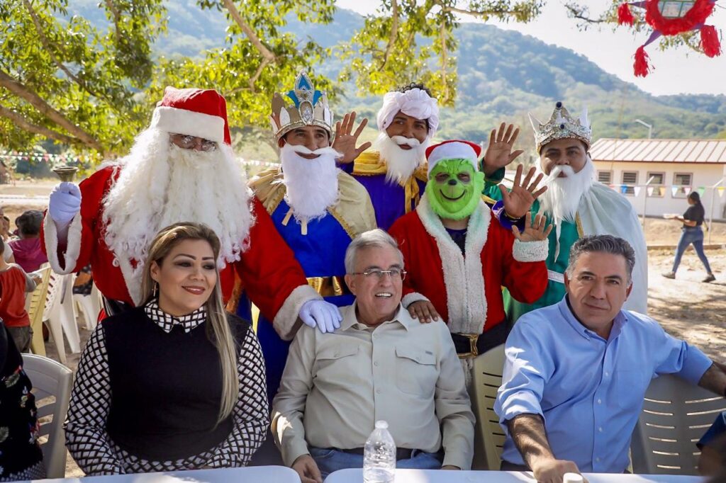 Santa María, Rosario, Sinaloa, a 13 de diciembre de 2022.- Para cumplir con su palabra empeñada con los habitantes de Santa María, el gobernador Rubén Rocha Moya visitó de nuevo esta comunidad, para resolver las necesidades de este nuevo asentamiento, y como lo hizo el año pasado, el motivo de la visita igualmente fue para convivir con las familias en una posada decembrina, donde a la sombra de los árboles, se rompieron piñatas, entregaron juguetes y bicicletas a los niños y disfrutaron de una comida.