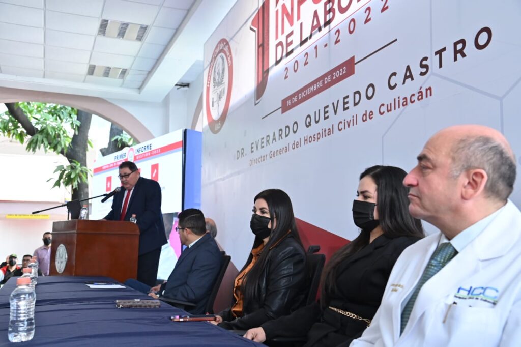 El Hospital Civil de Culiacán (HCC) se ha convertido en pieza fundamental para la atención de la población sinaloense y de estados vecinos, además de reforzar la relación con la Universidad Autónoma de Sinaloa (UAS) a través del Centro de Investigación y Docencia en Ciencias de la Salud (CIDOCS), así quedó de manifiesto en el Primer Informe de Labores 2021-2022 del doctor Everardo Quevedo Castro como director general de este nosocomio.