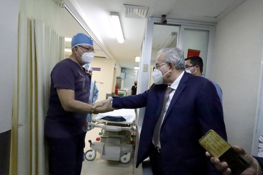 Pero, la visita del mandatario tiene otro fin, se dirige al quirófano donde los médicos Javier Osorio Salcido y Arturo Alaniz Ibarra se encuentran por iniciar una cirugía más de implante coclear; el mandatario les agradece la disponibilidad y ofrece todo el apoyo para que se lleven a cabo las cirugías sin problema.