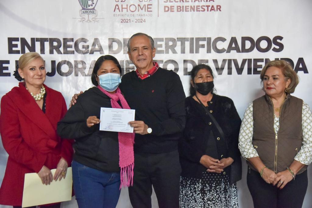 Detalló que en esta ocasión, a través de la Secretaría de Bienestar, se entregaron 70 acciones de vivienda que van desde cuartos, baños pisos firmes y techos.