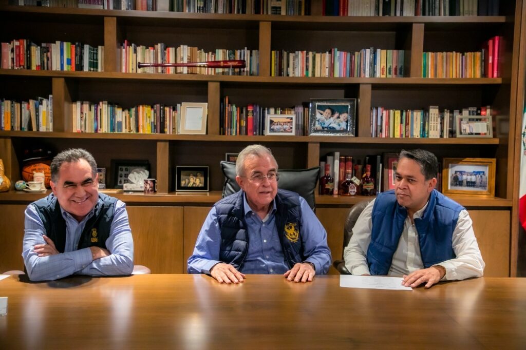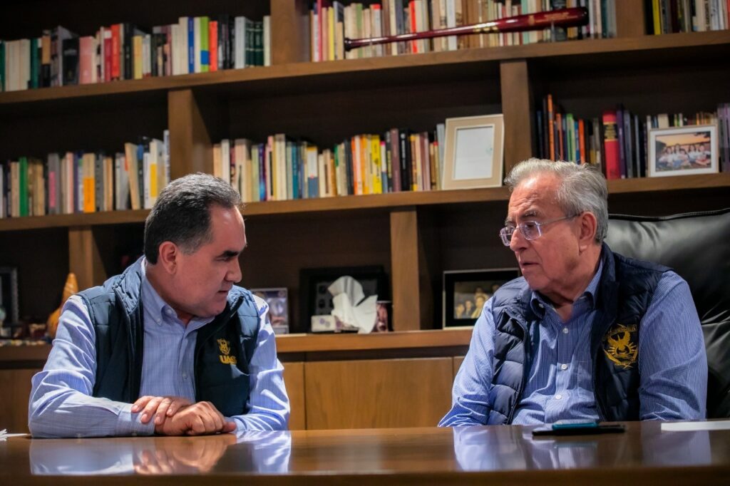Culiacán, Sinaloa, a 12 de Enero de 2023.- En sintonía con el compromiso del Gobierno Federal de otorgar una atención especial al sector educativo superior, esta mañana, el Gobernador Rubén Rocha Moya y el Secretario de Administración y Finanzas, Enrique Alfonso Díaz Vega, sostuvieron un encuentro con Jesús Madueña Molina, Rector de la Universidad Autónoma de Sinaloa, en la que acordaron una estrategia conjunta para resolver de manera definitiva los rezagos fiscales históricos de la institución rosalina que derivaron en el establecimiento de tres créditos fiscales distintos por parte del Servicio de Administración Tributaria en los últimos años, que se pagarán a través de convenios que implican como requisito ineludible e inmediato el timbrado del total de la nómina universitaria.