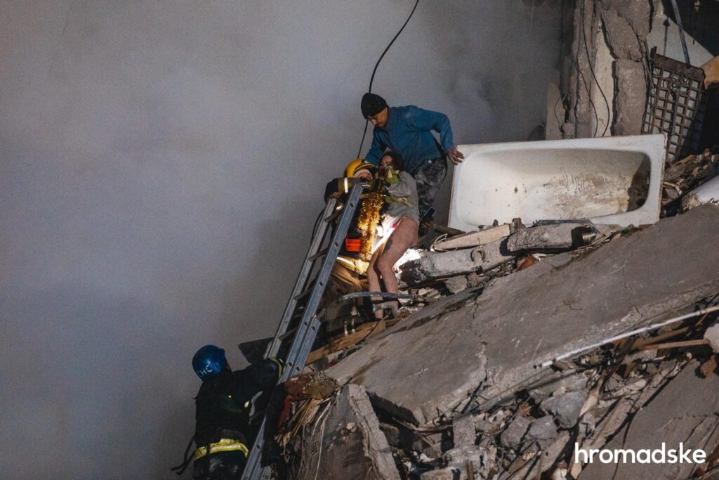 Una de esas supervivientes, Anastasia Shvets, pasó horas esperando a que la rescataran de lo que quedaba de la vivienda de su familia; no se podía acceder a ella por temor a que los escombros cedieran bajo sus pies.