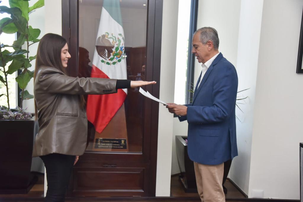 Karla Paola Alduenda Ortega, quien dijo que asume el nuevo cargo como el primer día que llegó a la administración, con mucho ánimo, y subrayó que el tema principal es agilizar los trámites y no detener nada.