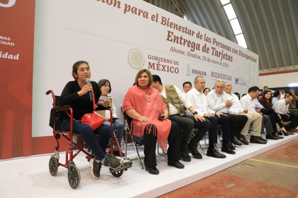 “Sinaloa necesitaba y merece una gente como él, por eso ustedes lo eligieron en el pasado proceso electoral, y este evento es una prueba de que Rubén está cumpliéndole a los sinaloenses, es el primer estado donde hay un acuerdo entre el gobierno federal y el gobierno estatal y por eso hay ya a partir de ahora universalidad en la pensión para todas las personas que tiene alguna discapacidad, eso hay que reconocérselo y hay que agradecerlo a Rubén Rocha”, precisó.