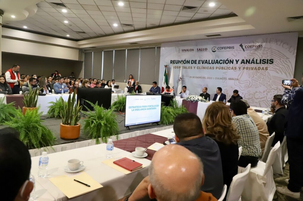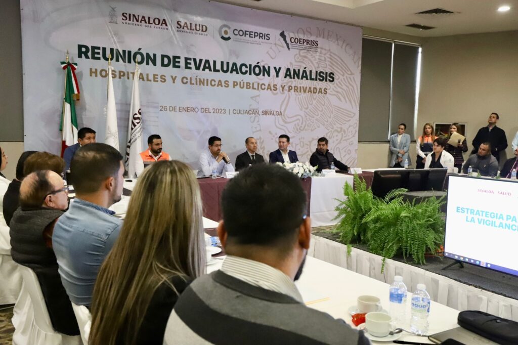 Culiacán, Sinaloa, jueves 27 de enero de 2023.- Encaminados hacia la implementación de una estrategia para fortalecer la vigilancia sanitaria en la entidad, la Secretaría de Salud, a través de la Comisión Estatal para la Protección contra Riesgos Sanitarios de Sinaloa (COEPRISS), llevó a cabo un encuentro con los directivos y titulares de los hospitales y clínicas públicas y privadas, a fin de trabajar con los mecanismos que salvaguarden la salud de las y los sinaloenses.