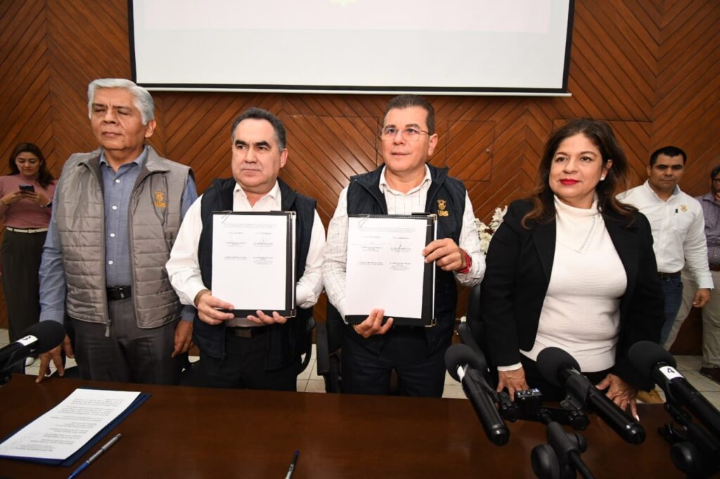“Tendrá resultados, como todo lo que hemos venido conveniando, efectivos, tendrá frutos que vamos a ver muy pronto como resultado de la firma de este convenio (…) muchas gracias por toda la aportación de la Universidad Autónoma de Sinaloa, de quien me siento orgulloso porque no solo soy egresado de dos carreras de la UAS, sino además trabajador (…) muchas gracias por las aportaciones y por lo que se viene para ambas instituciones”, manifestó el Alcalde, quien adelantó que la Universidad volverá a participar en el Premio Mazatlán de Literatura y se buscará que se sume a la Feria del Libro Mazatlán.