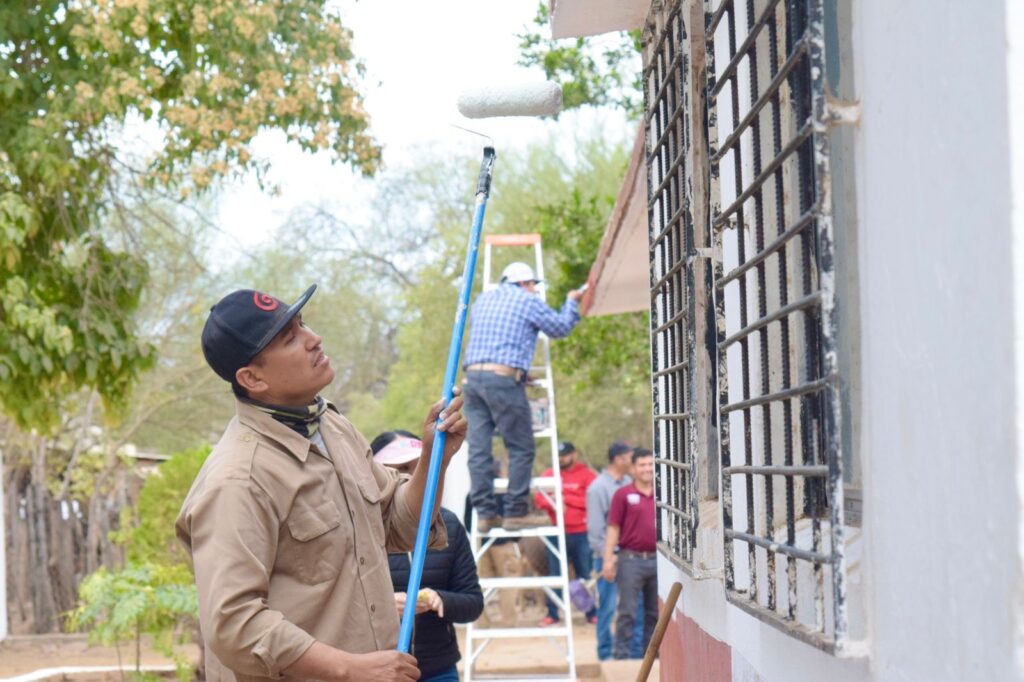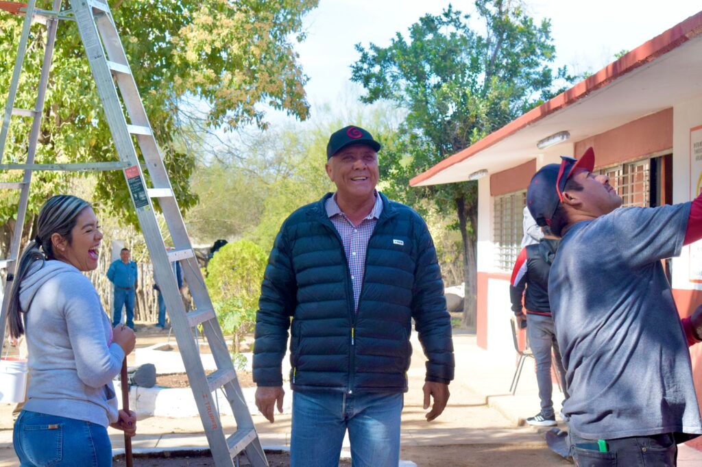 El Fuerte, Sinaloa, a 28 de enero del 2023.- Con actitud de servicio y herramientas en mano, el equipo de trabajo que encabeza el Presidente Gildardo Leyva Ortega, asistió esta mañana a la comunidad de Chinobampo, para dar seguimiento a la petición hecha por maestras de la Escuela Secundaria Lic. José López Portillo, en la cual se solicitó pintura y un tramo de barda perimetral. En respuesta a este requerimiento, el mandatario se comprometió a proporcionar la pintura y traer al personal del Ayuntamiento para apoyar con la mano de obra y con tareas de limpieza en el plantel.