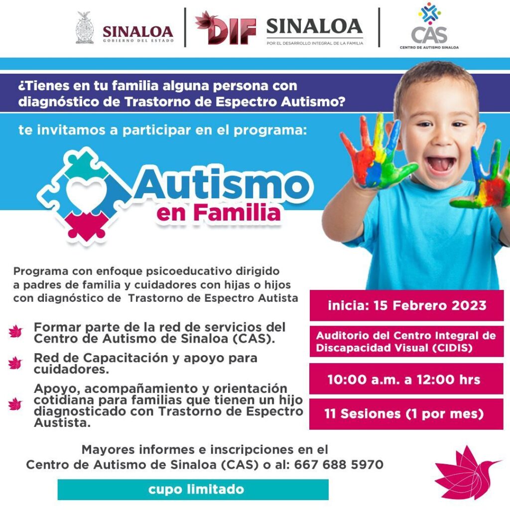 Informes al teléfono 667 688 5970, también puedes acudir al Centro de Autismo de Sinaloa (CAS) habrá cupo limitado.