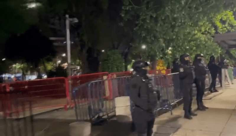 Para el retiro se presentaron al lugar 150 elementos de la Secretaría de Seguridad Ciudadana quienes tras retirar los objetos, colocaron vallas en la zona para evitar la reinstalación del plantón.