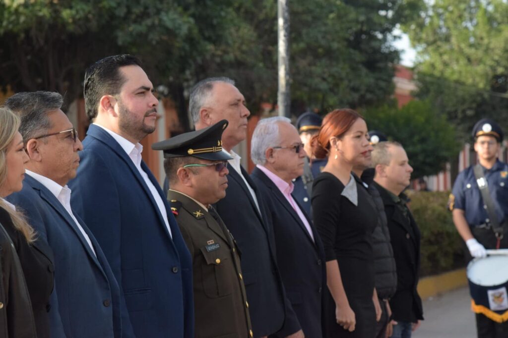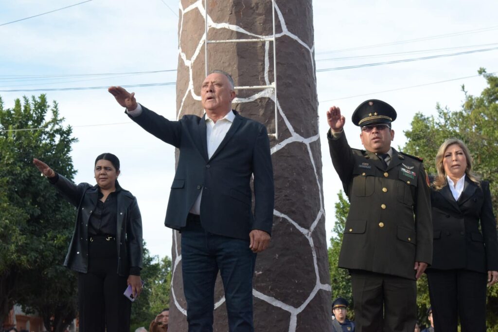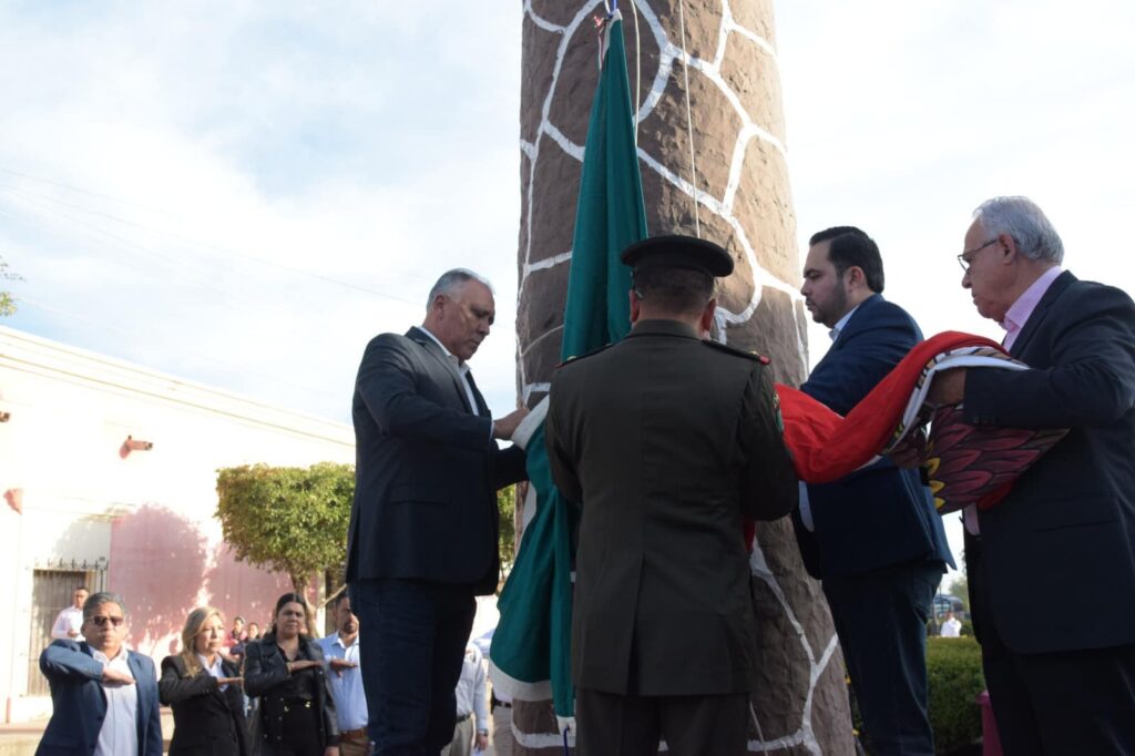En un acto cívico el presidente municipal Gildardo Leyva Ortega convocó a honrar a la bandera nacional testigo de innumerables y sangrientas luchas, en defensa de nuestra soberanía y territorio.