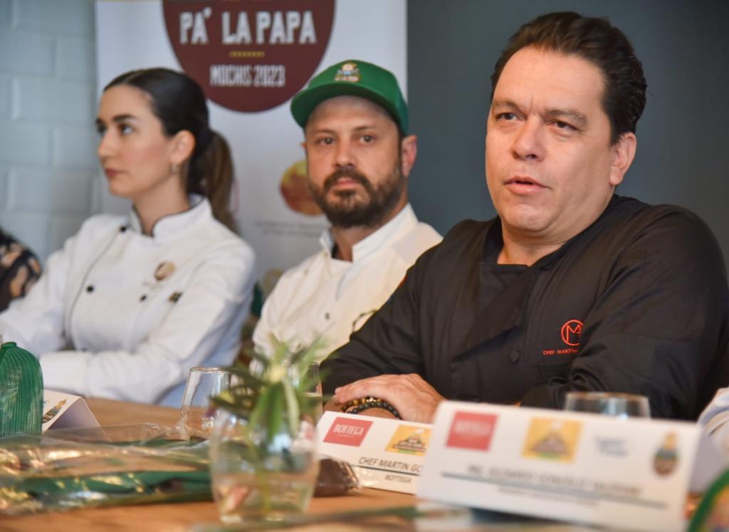 Los chefs participantes fueron presentados ante los medios de comunicación por el Secretario de Economía del Municipio de Ahome (SEDECO), Héctor Emanuel Ibarra Flores y el Presidente de la Asociación de Productores de Papa de Los Mochis, Gildardo González Saldívar, quienes son los organizadores del Festival Pa’la Papa Los Mochis 2023, el cual se desarrolla este fin de semana 25 y 26 de febrero en la Zona 30, por la calle Zaragoza, entre Blvd. Rosendo G. Castro e Independencia.