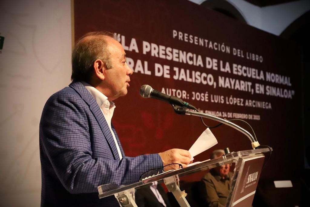 López Arciniega agradeció la cortesía que le brindó el mandatario estatal al acudir a comentar su obra, destacando además el profundo conocimiento de Rocha Moya sobre el verdadero impacto de los planteles normalistas en la realidad educativa actual y el aporte de los egresados en la educación sinaloense.