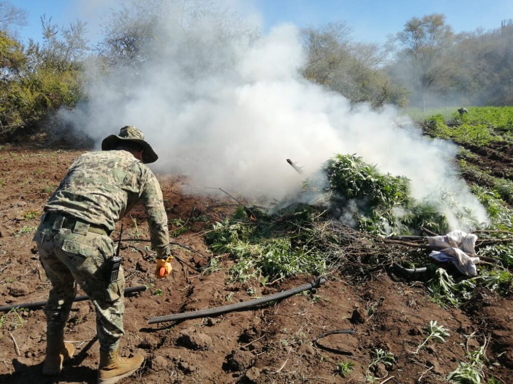 Fue mediante recorridos a pie y aéreos que se pudieron detectar los predios; en dos se localizaron plantas que pudieran tratarse de amapola y el resto de presunta mariguana, por lo que se implementó un operativo en las inmediaciones a fin de localizar a personas a cargo de dichos terrenos, sin embargo no se lograron ubicar; ante esto, los elementos federales y estatales procedieron a la destrucción y quema de las plantas.
