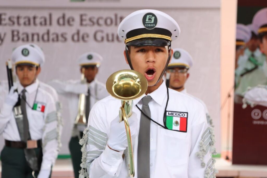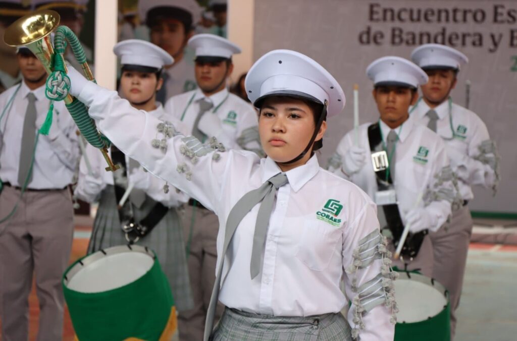Por su parte, la subsecretaria de Planeación Educativa, Catalina Esparza Navarrete, quien asistió en representación de la titular de la SEPyC, Graciela Domínguez Nava, destacó que en el proceso de transformación que vive en estos momentos el país, los jóvenes de bachillerato son la nueva generación que recibe las enseñanzas y le da una nueva valorización a los símbolos patrios de México, “reconocemos el esfuerzo y el tiempo dedicado en la práctica del ritmo y la exactitud tanto en las escoltas de bandera como en las bandas de guerra”.